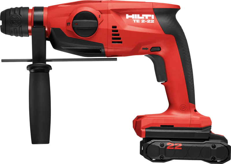 - Unbeatable grip and agility – TE 2-22 is our lightest and slimmest cordless rotary hammer, with improved in-line pistol grip designed to help you work in cramped quarters without the muscle strain