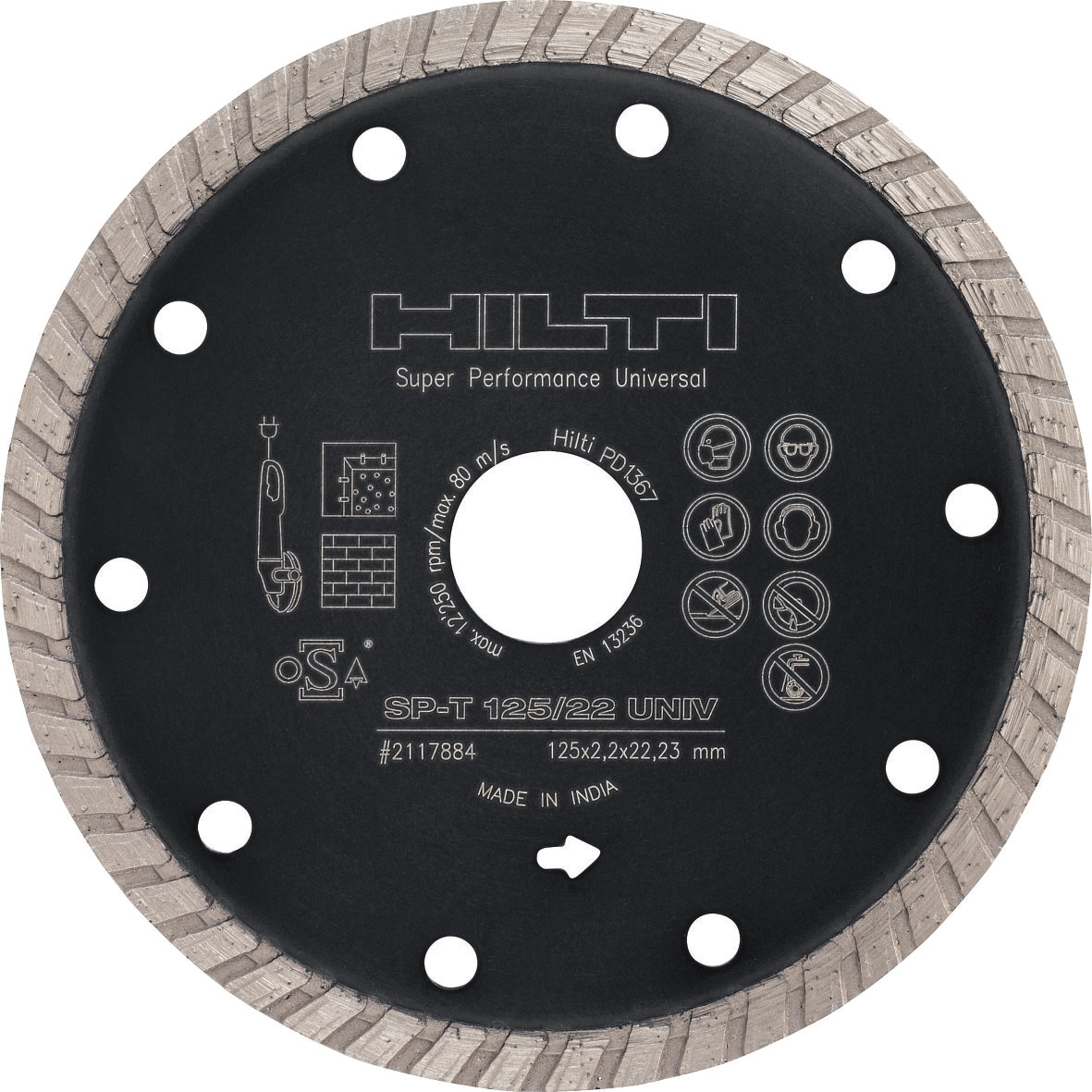 - Turbo, continuous-rim blade style – designed to deliver faster cutting speeds while maintaining a smooth cut